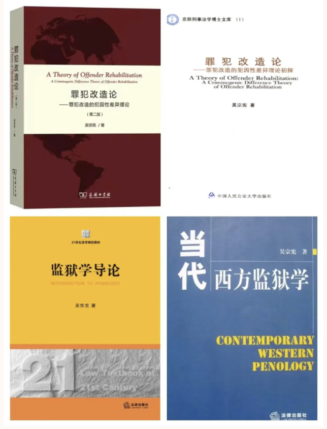 吴宗宪教授的主要研究领域包括犯罪学、监狱学、社区矫正和犯罪心理学,他是我国重要的资深监狱学研究者之一。从1984年在中国政法大学研究生院读二年级时修读“劳改法”(即后来的监狱学)课程、聆听原抚顺战犯管理所所长金源先生和原国民党战犯尚传道先生的讲座、参加大学生演讲团到山东的监狱和劳教所给犯人和劳教人员演讲开始,正式与监狱学结缘,40多年来,在监狱学领域深耕细作,进行了多方面的大量的工作。在研究方面,出版了种类较多的著作。其中,既有专门论述国外监狱学内容的《当代西方监狱学》(法律出版社2025年),也有全面阐述监狱学内容的《监狱学导论》(法律出版社2012年),以及侧重应用性研究的《中国现代化文明监狱研究》(主编,警官教育出版社1996年)和《我国监狱法修订研究》(主编,中国社会出版社2021年);既有系统论述国外罪犯心理矫治的《国外罪犯心理矫治》(中国轻工业出版社2004年),也有论述我国罪犯心理矫治的《中国服刑人员心理矫治》(主编,法律出版社2004年)和《中国服刑人员心理矫治技术》(主编,北京师范大学出版社2010年);还有专门论述罪犯改造理论的专著《罪犯改造论——罪犯改造的犯因性差异理论初探》(中国人民公安大学出版社2007年)和《罪犯改造论——罪犯改造的犯因性差异理论》(第二版,商务印书馆2019年)等。这些研究成果较为深入地探讨了监狱领域的相关内容,给学术研究和实务工作提供了很多参考信息和一些思考建议。